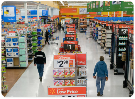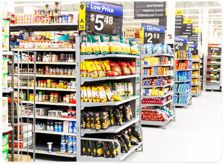 As you walk through a Walmart store, you probably notice that many of the aisles don’t change very often, but there are many “feature” locations that are updated regularly. The shelves at the ends of aisles, the large containers in the middle of the walkways, and the eye catching displays at the front of the store are a few examples.