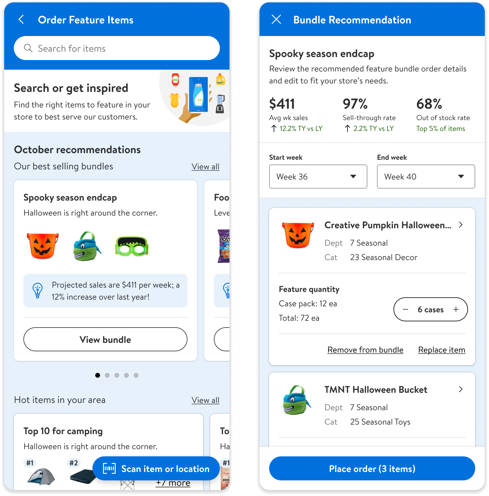 I led research and design for a mobile tool that streamlined ordering, supported Walmart’s push for store-level agility, and laid the groundwork for future AI-powered recommendations tied to space, timing, and sales trends.